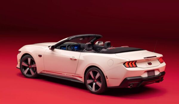 Los aspectos más destacados incluyen nuevas llantas de 20 pulgadas con acabado en Dark Gravity Grey con detalles mecanizados y Vermillion Red, tapas centrales de aluminio estampado, insignias de aniversario en los guardabarros y el maletero, así como una placa serializada del 60 aniversario en el panel de instrumentos. También se ofrecen gráficos laterales retro.