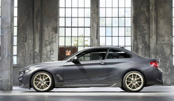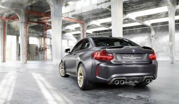 El BMW M Performance Parts Concept se presenta en el acabado de pintura exterior Frozen Black con M Performance en dorado para acentuaciones e inscripciones.