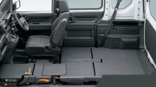 En tan solo 3,39 metros de longitud, el N-Van presume de un interior muy amplio y capaz que además cuenta con soluciones muy prácticas. Por ejemplo es posible dejar una superficie completamente plana y sin suelo sobre-elevado gracias al uso de asientos ultra-finos.