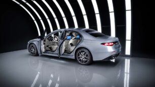 Por primera vez en la historia del modelo, la estrella de Mercedes puede ir iluminada, acompañada por una parrilla también retroiluminada, un 20 % más grande, y unos nuevos faros DIGITAL LIGHT con tecnología micro-LED que no solo impresionan visualmente, iluminan hasta un 40 % más, con un alcance de hasta 600 metros. Prácticamente ves el futuro con ellos, y no es broma, la marca en esto siempre ha sobresalido y con la nueva clase S quiere dejarnos atónitos.