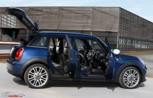 La ampliación de la distancia entre ejes en 72 mm respecto al nuevo MINI 3 puertas (hasta los 2.567 mm) permite espacio para tres asientos en la parte trasera, con 72 mm de mayor holgura a la altura de las rodillas, 15 mm más de espacio para la cabeza y habitáculo 61 mm más ancho a la altura de los codos. Además, maletero ahora crece hasta los 278 litros de volumen ampliable a 941 litros (67 litros más en comparación con el maletero del modelo de tres puertas).