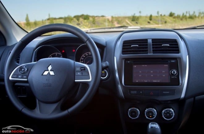 En el interior, la gama ASX 2013 cambia su volante multifunción de cuero y el botón selector para el sistema 4WD, que sustituye al anterior mando giratorio sobre la consola.