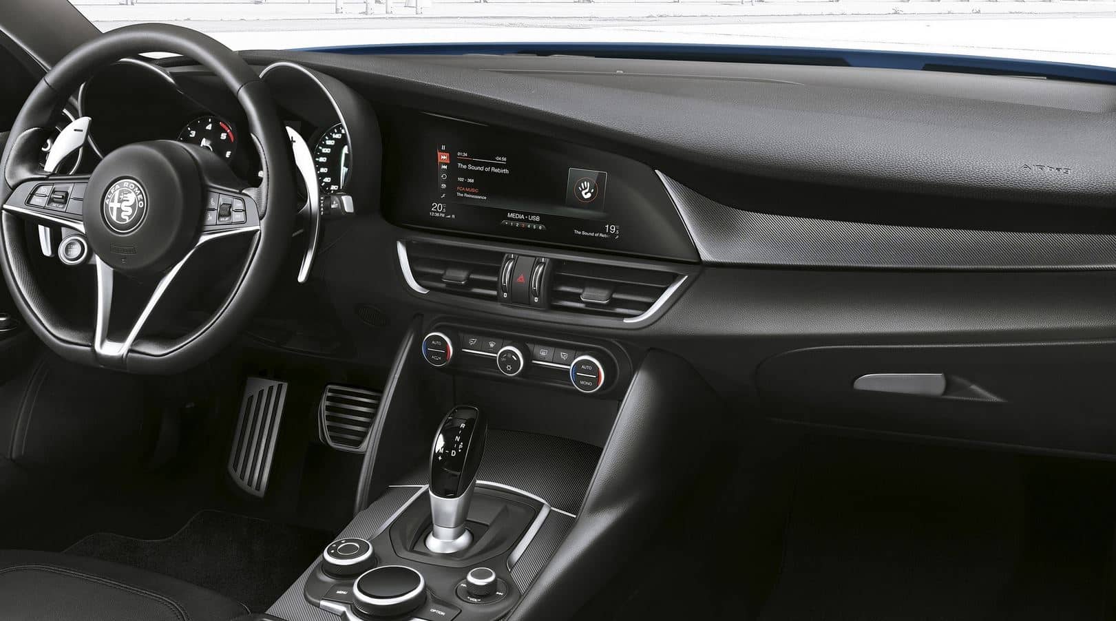 En el Giulia el acabado Executive cuenta con el sistema de navegación con pantalla a color de 8,8 pulgadas, radio DAB, cámara de visión posterior, espejo interior fotosensible, instrumentación con pantalla a color de siete pulgadas, sensores de parking delanteros y traseros, retrovisores satinados, asiento posterior abatible por partes, detector de ángulo muerto, SmartBeam, acceso sin llave y llantas de aleación de 17 pulgadas.