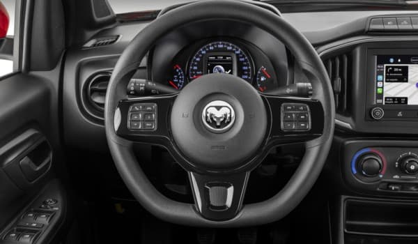 El interior mantiene todo como siempre con la única salvedad, una vez más, del logo RAM en el volante. Según versiones pueden tener aire acondicionado, ordenador, sistema multimedia con pantalla táctil, Apple CarPlay, Android Auto, control de crucero, elevalunas eléctricos y cierre con mando.
