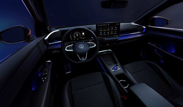 El Volkswagen T-Roc se diferencia por un habitáculo completamente rediseñado, con materiales de mayor calidad, superficies blandas y un ambiente tipo lounge gracias a la nueva iluminación ambiental.