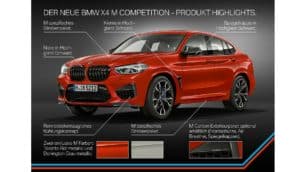 Hay una gama de siete colores exteriores en los BMW X3 M y BMW X4 M. Algunos de los colores son específicos, igual que algunas funciones de la instrumentación y el Head-Up Display.