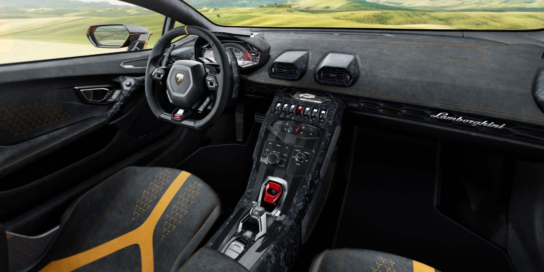 – El interior del Huracán Performante cuenta con muchos elementos en fibra de carbono forjada. Entre los elementos en los que se ha reducido el peso nos encontramos con los respiraderos de aire, las levas, las manijas de las puertas y la consola central. Haciendo referencia al mundo de las carreras la marca ha tapizado los ligeros asientos en Alcántara.