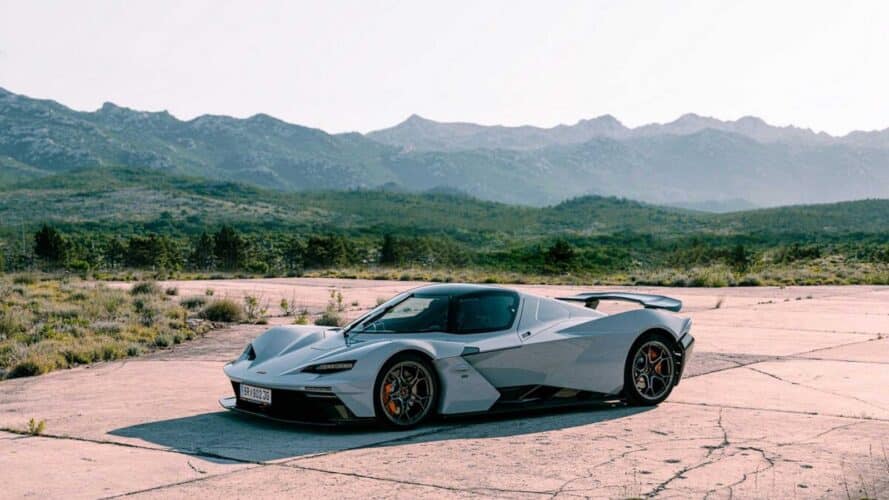 La guinda del pastel del KTM X-Bow GT-XR es el motor de cinco cilindros turboalimentado de 2.5 litros derivado de Audi. Desarrolla nada menos que 500 CV a 6.350 rpm y 581 Nm de par máximo a 5.500 vueltas. Está asociado a una transmisión de doble embrague y siete velocidades que envía su potencia a las ruedas traseras gracias a un diferencial de deslizamiento limitado.