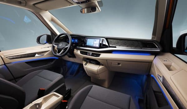 La séptima entrega del Multivan utiliza por primera vez la plataforma modular MQB que es más ligera y rígida, y permite usar tecnologías que hasta ahora no eran posibles en el multiespacio como pueden ser las motorizaciones híbridas enchufables o muchos elementos de equipamiento.