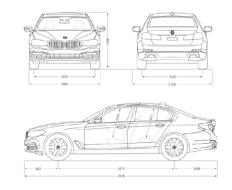 – Para empezar, se trata de la séptima generación del BMW Serie 5, la berlina de mayor éxito comercial del mundo. Silueta dinámica y deportiva, estética distintiva. En comparación a su predecesor, las dimensiones externas han aumentado ligeramente: Con 4935 milímetros, el nuevo BMW Serie 5 Berlina, es 36 milímetros más largo, el ancho del vehículo ha aumentado en seis milímetros a 1868 milímetros y la altura en dos milímetros a 1466 milímetros. La distancia entre ejes aumento en siete milímetros a 2975 milímetros. Gracias a estas dimensiones y a un nuevo interior se ha mejorado la sensación de espacio con más altura interna y espacio para las piernas en la parte trasera, así como mayor capacidad de maletero. (530 litros).