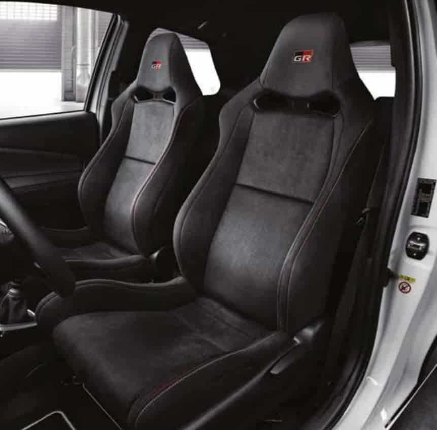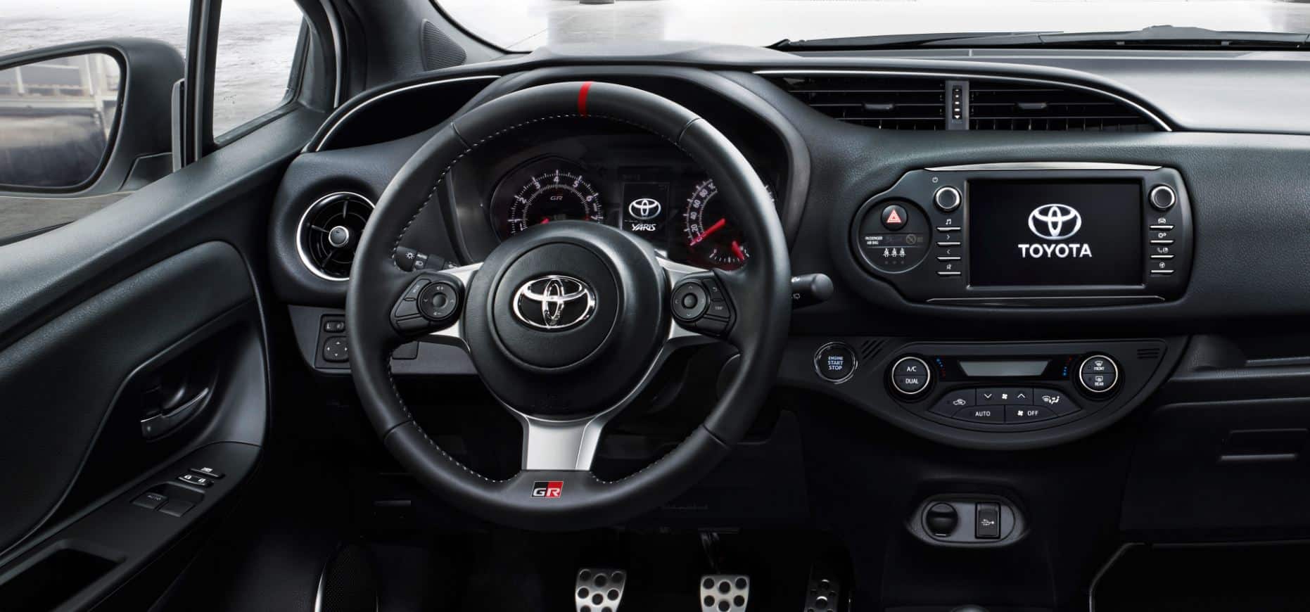 – En el interior el modelo monta asientos deportivos diseñados especialmente por Toyota Boshoku, que proporcionan el mayor refuerzo y soporte de la categoría. Los auténticos detalles de alto rendimiento son un volante de diámetro reducido revestido en cuero –que comparte con el GT86– que incorpora una línea central marcada para ayudar al conductor a posicionar el vehículo con precisión. También cuenta con unos pedales deportivos en aluminio y un cuadro de mandos rediseñado que refleja su carácter marcadamente deportivo.