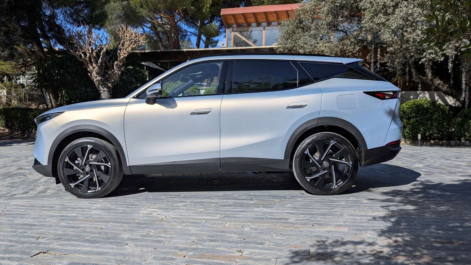 De perfil es donde más me ha sorprendido. La caída del techo tipo fastback está muy bien medida, ni exagerada ni forzada. Aquí es inevitable que se te vaya la cabeza a Land Rover, incluso a ciertos Range Rover Sport por proporciones y limpieza de superficies. La línea lateral es limpia, tensa, sin pliegues innecesarios. ç