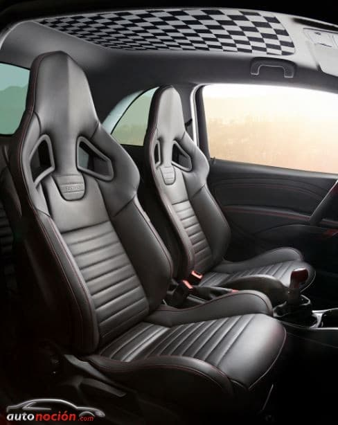 En su interior disfrutaremos de asientos delanteros Recaro Performance en Morrocana y cuero con el exclusivo diseño “Red & Roll” del ADAM S. A parte de esto dispone de un paquete de cuero que incluye el volante, el pomo de la palanca de cambios y el freno de mano, este último en cuero rojo.