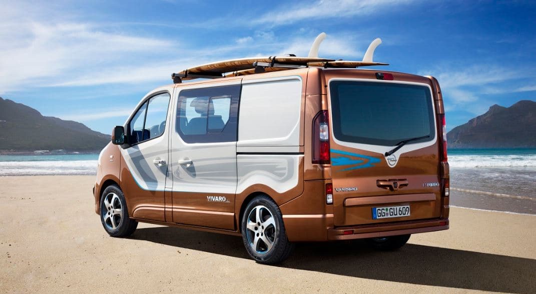 El Concepto Vivaro Surf es realmente atractivo con su pintura marrón cobrizo y adhesivos exteriores en blanco. Las llantas de aleación de 17 pulgadas realizadas por Irmscher enfatizan el aspecto deportivo y elegante. Pese a lo que os pueda parecer su aspecto exterior hay que tener en cuenta que este modelo muestra sus auténticos valores una vez se abren las puertas y el portón trasero – bien sea manualmente o a través del sistema de apertura y arranque sin llave Open&Start.
