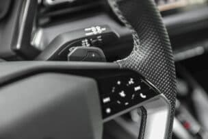 Esta unidad dispone del deportivo volante multifunción de nuevo diseño con levas solidarias. Está revestido en cuero y resulta muy vistoso, pero poco práctico para maniobrar. Además, los botones táctiles tienen excesiva sensibilidad, aunque responden muy bien y también funcionan como una tecla. Puede ser calefactado y se ofrece el volante convencional.