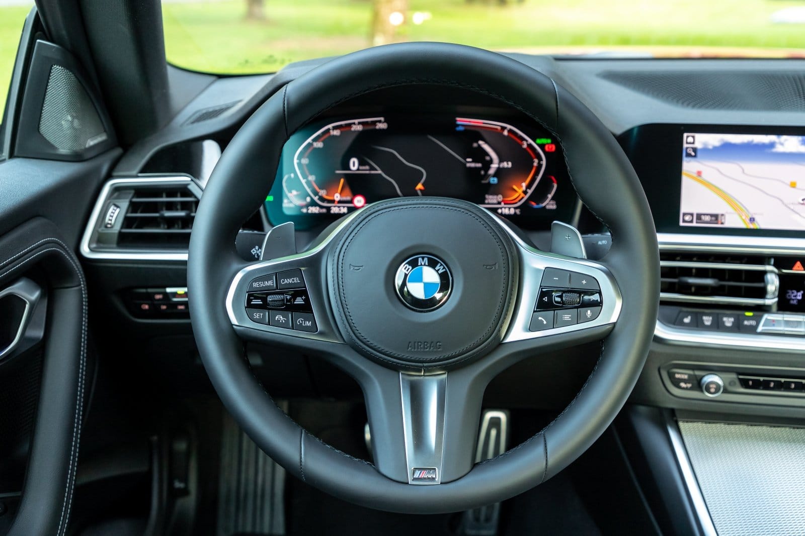 Las manos se posan cómodamente sobre un grueso volante multifunción de suave cuero. Es extremadamente agradable al tacto. Se trata de un signo característico de BMW que, personalmente, me encanta. Puede ser calefactado y también se ofrece un volante deportivo M Sport como este. Tampoco falta en esta unidad un recomendable Head-Up display.