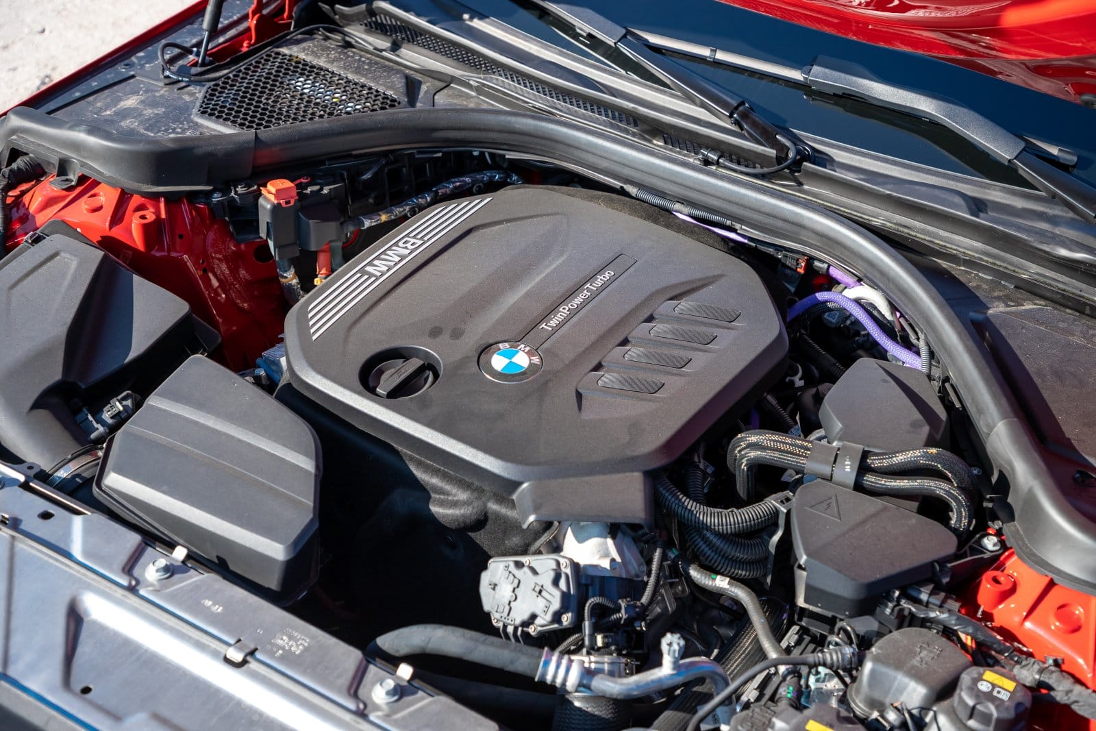 Para el exterior se ofrecen un total de ocho colores, la mayoría clásicos. Hay acabado sólido y metalizado. En este caso vemos un Melbourne Rot metalizado. Sobre el techo descansa una antena de tipo aleta de tiburón. En opción se puede pedir un techo solar practicable eléctrico. Las molduras exteriores pueden ir en plata o en negro. También se ofrece un alerón M.