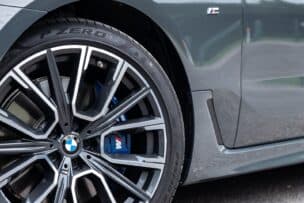 Los pasos de rueda albergan en esta unidad unas llantas de aleación de 20 pulgadas con acabado bicolor y radios de estrella. Calzan unos neumáticos Pirelli P Zero runflat en medidas 245/40 R20 99Y en el eje delantero y 275/35 R20 102Y en el trasero. Por último, la superficie acristalada es generosa y las lunas posteriores están tintadas opcionalmente.