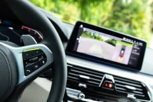 Los sensores de aparcamiento perimetrales son de serie, aunque es recomendable añadir el Parking Assistant Plus opcional con Surround View con Top View, Remote 3D View, PDC y sistema de aparcamiento semiautónomo si vamos a movernos por espacios estrechos. La visión nocturna con detección de peatones no está disponible en el Serie 6 GT.