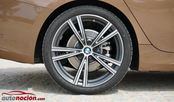 Los abultados pasos de rueda de nuestra unidad de pruebas contaban con unas llantas de aleación de radios dobles y acabado cepillado. En el eje delantero nuestra unidad de pruebas equipaba unos neumáticos Bridgestone Turanza T005 en dimensiones 225/40 R19 93Y mientras que en el eje propulsor equipaba la misma marca y modelo solo que en dimensiones 255/35 R19 96Y (+1.191 euros).