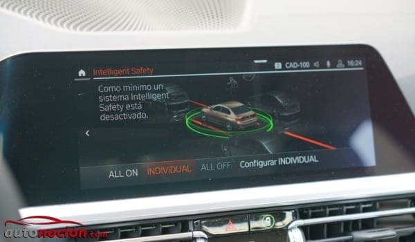 El salpicadero tiene un aire moderno y ligero y los materiales rebosan calidad. La principal protagonista del interior de nuestra unidad de pruebas era la gigantesca pantalla central acompañada del cuadro de instrumentos virtual. El BMW Live Cockpit Professional opcional que equipaba nuestra unidad de pruebas incluye una instrumentación de alta resolución tras el volante, con una diagonal de 12,3 pulgadas (31 cm) y un Control Display de 10,25 pulgadas (26 cm). Este paquete de equipamiento también integra el sistema de navegación adaptativo y un sistema multimedia con disco duro de 20 GB de memoria. El Cuadro de instrumentos es muy claro e intuitivo, sin embargo, me esperaba mucho más y sinceramente, me sigo quedando con el que equipa Audi en el A4. Respecto a la pantalla central, me quedo con la de BMW porque es francamente superior en todo, y con el control gestual y el asistente por voz, la cosa mejora notablemente -he de subrayar que me ha gustado mucho más el asistente de voz de BMW que el archiconocido de Mercedes-Benz-. El sistema por lo general es brutal en todos los sentidos pero ojo, porque no podrás hacer uso de tu dispositivo Android mediante Android Auto porque en BMW sólo ofrecen el modelo con Apple Car Play, una auténtica tontería del fabricante y una apuesta a todas luces errónea.