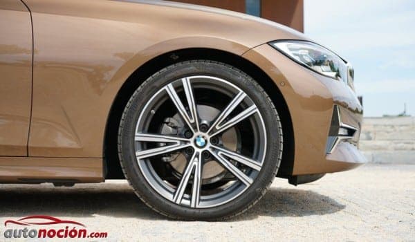Los abultados pasos de rueda de nuestra unidad de pruebas contaban con unas llantas de aleación de radios dobles y acabado cepillado. En el eje delantero nuestra unidad de pruebas equipaba unos neumáticos Bridgestone Turanza T005 en dimensiones 225/40 R19 93Y mientras que en el eje propulsor equipaba la misma marca y modelo solo que en dimensiones 255/35 R19 96Y (+1.191 euros).
