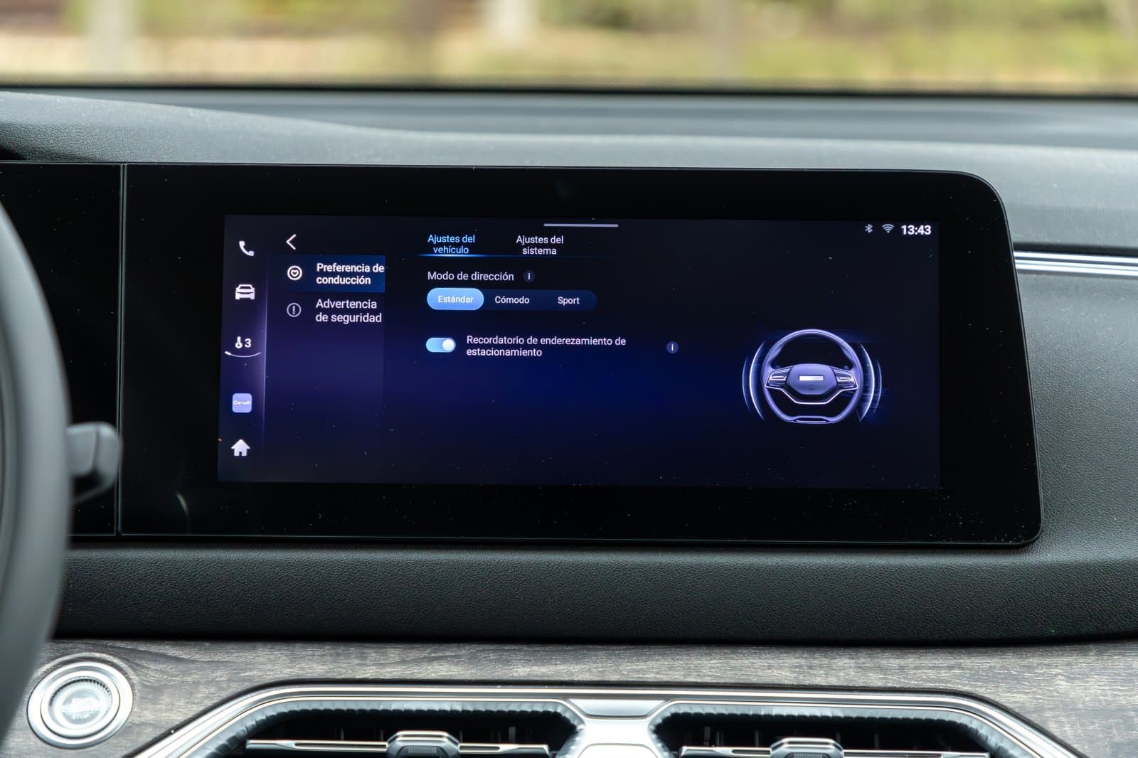 El sistema es compatible con Android Auto y Apple CarPlay por cable. No ofrece actualizaciones OTA, aunque sí diversas apps. Nos gusta que, si bien muchas funciones se manejan desde la pantalla, se han dejado fuera los controles básicos del climatizador monozona. Los botones para manejarlo te recordarán a Mercedes-Benz.