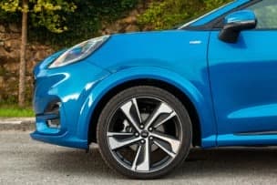 Dichas llantas de aleación de 19 pulgadas están calzadas con neumáticos Goodyear Eagle F1 en medidas 225/40 R19 93V en ambos ejes. En dimensiones, el Ford Puma alcanza los 4,21 metros de largo, 1,80 metros de ancho y 1,53 metros de alto. La batalla asciende a 2.588 mm y los anchos de vía delantero y trasero miden 1.562 mm y 1.521 mm, respectivamente.