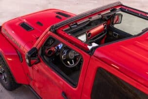 En dimensiones, el Wrangler 3p alcanza los 4.33 metros de largo, 1.89 metros de ancho y 1.88 metros de alto. La batalla es de 2.459 mm y el ancho de vías en ambos ejes de 1.598 mm. Para la carrocería hay disponibles 10 colores. En este caso vemos el Rojo Firecracker. Mopar ofrece más de 200 piezas y accesorios para personalizar al máximo el icónico todoterreno.