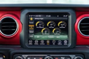 Esta pantalla a todo color integra la navegación y presenta información multimedia y del estado de la caja de transferencia en tiempo real. El clúster también incluye las páginas Off-Road. Proporcionan al conductor una serie de indicadores útiles como inclinación, balanceo, altitud, coordenadas GPS, distribución de potencia en el tren motriz y más.