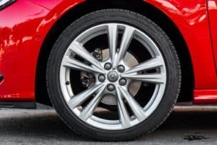 Llenando los pasos de rueda nos encontramos con unas llantas de aleación de 18 pulgadas -520€- calzadas con unos neumáticos Bridgestone Turanza T001 en dimensiones 225/40 R18 92W. Visto de lado, está en la línea de sus rivales con 4,37 metros de largo, 1,81 metros de ancho y 1,48 metros de alto. La batalla mide 2.662 mm y las vías delantera y trasera 1.548 y 1.565 mm, respectivamente. El coeficiente Cx es de 0,29.