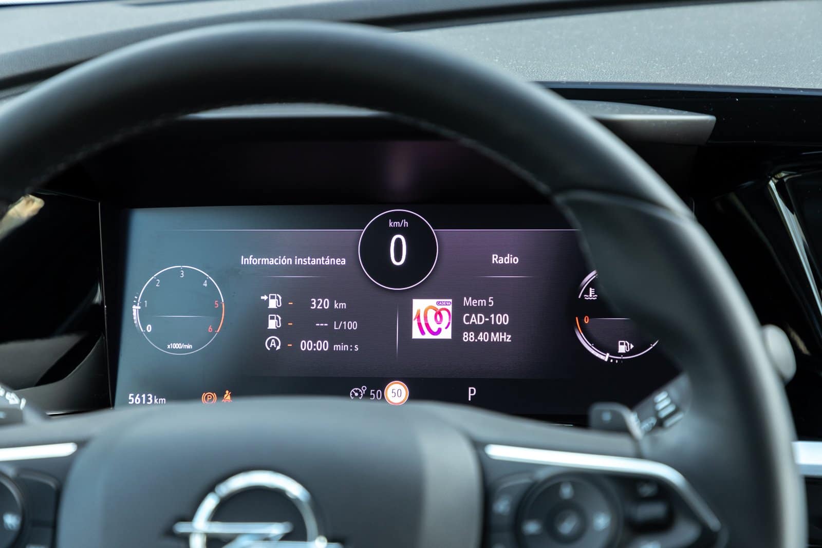 Las manos se posan cómodamente sobre un volante de diseño similar al del resto de modelos Opel. Cuenta con levas solidarias y tras él hay un cuadro de instrumentos digital de 12 pulgadas. Goza de cierta personalización, con varios modos disponibles (Personal, Mínimo, Navegación…). Sus gráficos y fluidez son aceptables, con buen aporte de información.