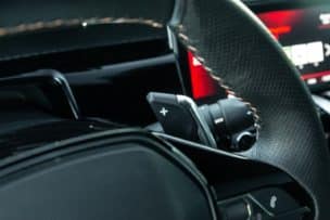 El modelo cuenta con levas de gran tamaño tras el volante, pero su tacto de plástico podría haberse cuidado un poco más y no son especialmente “obedientes”.