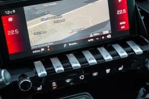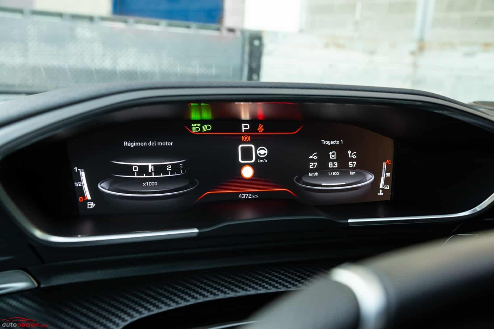 No podía faltar tampoco el ya conocido i-Cockpit, que incluye un volante más pequeño de lo habitual (351 mm x 329 mm), una unidad de visualización frontal con una pantalla digital de alta resolución y una pantalla táctil capacitiva HD de 10 pulgadas de ancho en formato 8:3. Vayamos por partes, que hay mucho de lo que hablar.