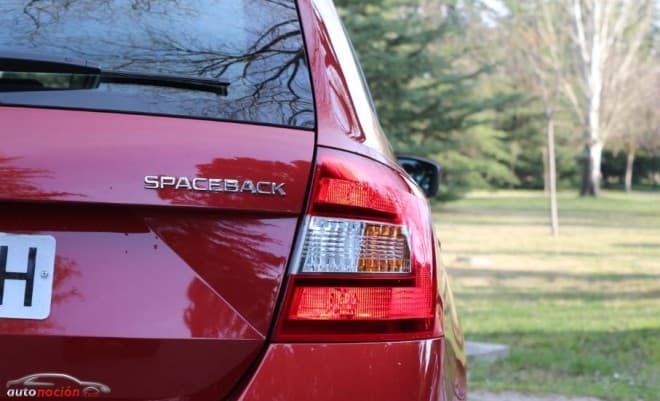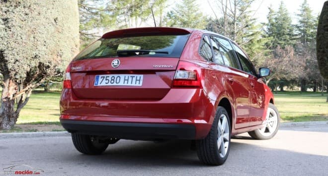 Su silueta cuenta con un toque deportivo y se encuentra separada por unas líneas longitudinales que atraviesan el vehículo. La parte trasera es la que más cambia respecto al Rapid y esto ocurre básicamente porque no encontramos el tercer volumen.