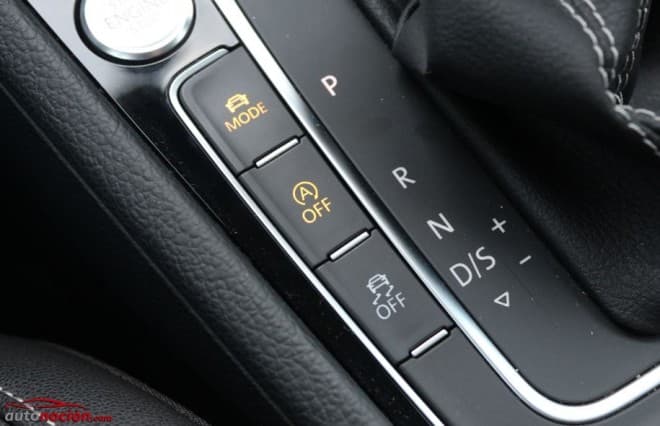 La base de la palanca de cambios está rodeada de botones. A la derecha de la misma nos encontramos con el botón del sistema de sensores de aparcamiento mientras que a la izquierda tendremos el botón de Start Stop, el botón de desconexión del ESC, el botón mode y la desactivación del sistema start and stop.