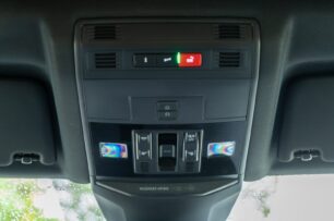 A ella se unen dos posavasos, un reposabrazos deslizable con ajuste de altura que alberga una guantera, un freno de mano eléctrico y el botón del AutoHold. El final de la consola central pone a disposición de los pasajeros traseros dos tomas USB-C, pero y salidas de ventilación con regulación del caudal de aire.