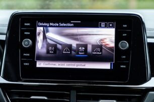 Respecto al cambio DSG, este nos ofrece una rapidez notable y unos cambios de marcha prácticamente imperceptibles en cualquier circunstancia. En una conducción tranquila, sube de marcha en el entorno de las 1.800 rpm. Se puede utilizar manualmente con las levas ubicadas tras el volante o con la palanca de cambios, que también tiene una posición ‘S’.