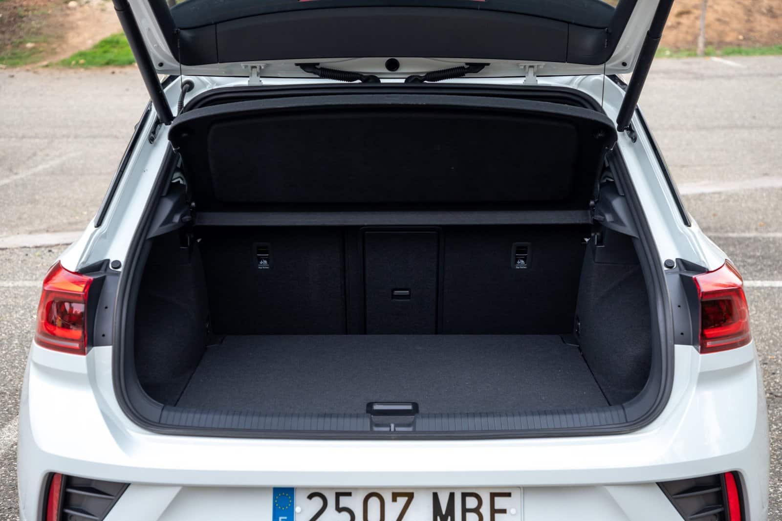 En la zaga destaca un alerón negro en la tapa del maletero bajo el que se esconde la tercera luz de freno. Le sigue una luna de aceptables dimensiones y un área central con los grupos ópticos Full LED de diseño tridimensional. En el centro vemos el emblema Volkswagen y la insignia cromada T-ROC en posición central.