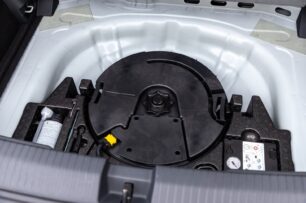 Bajo el doble fondo se puede equipar una rueda de repuesto de tamaño reducido en lugar del kit antipinchazos. La superficie de carga es regular, con huecos a los lados, iluminación y diferentes ganchos para fijar bolsas. También existe la posibilidad de instalar una red portaobjetos. El borde de carga se queda a 760 milímetros del suelo.