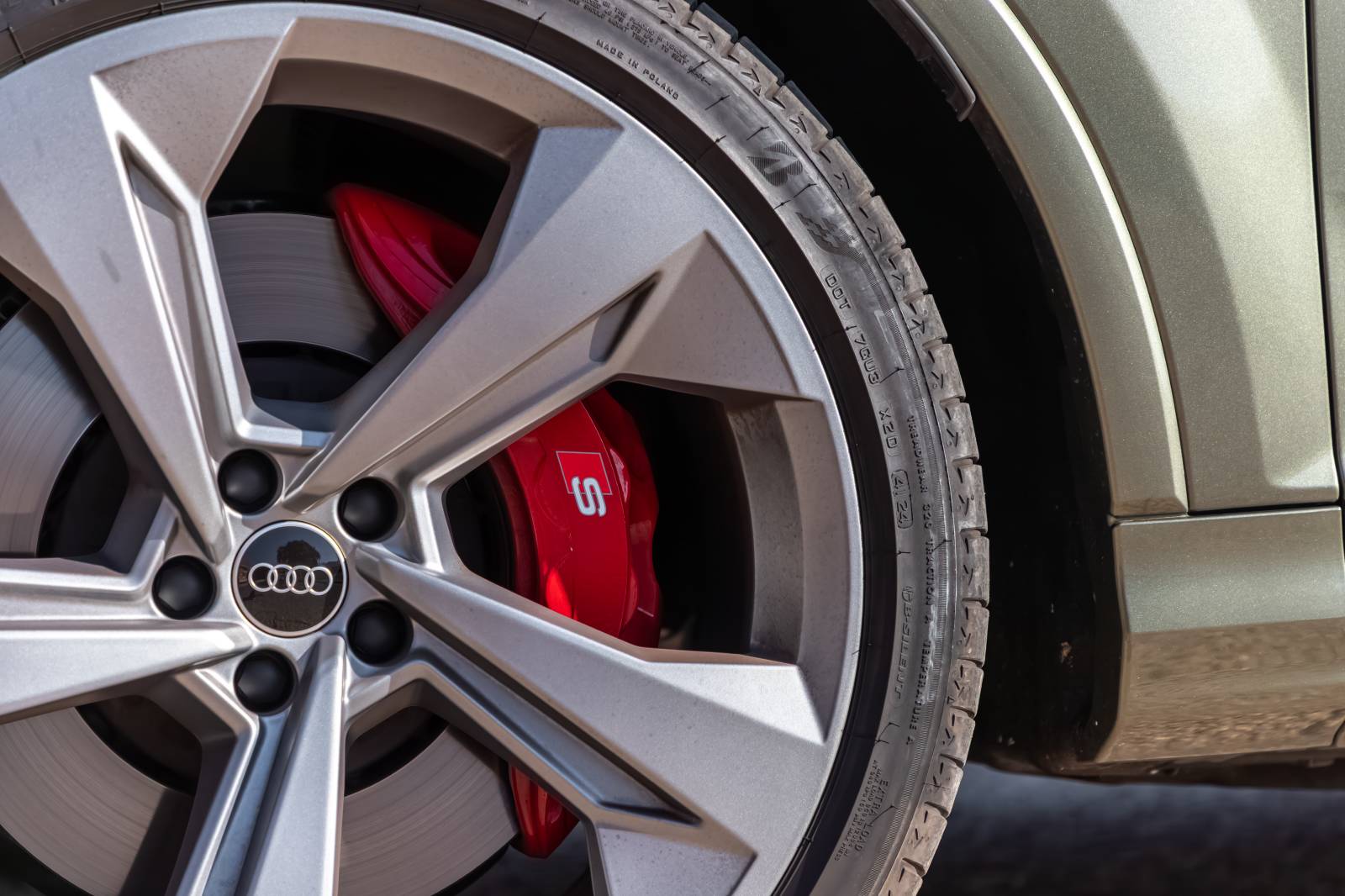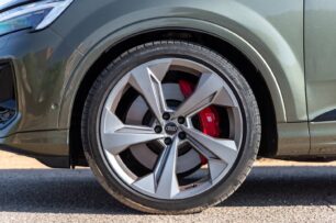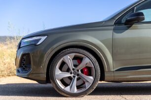 Para el equipo de frenos, el Audi Q7 monta de serie unos discos ventilados de 17 pulgadas en ambos ejes. Su funcionamiento y tacto son normales en el segmento, sin nada que destacar. Lo que sí podemos equipar opcionalmente son pinzas de freno en color rojo. El Audi SQ7 monta discos ventilados de 400 mm de diámetro en el eje delantero y ventilados de 350 mm en el trasero.