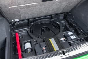 Por su parte, el portón eléctrico del maletero de serie deja una apertura de carga ancha, quedando el borde de carga a una altura libre al suelo de 820 milímetros (casi un centímetro más alto que en el Audi RS Q3). Bajo el suelo del maletero encontramos un espacio para la rueda de repuesto de emergencia y un altavoz de graves con el equipo de Bang & Olufsen.