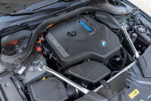 El BMW 530e xDrive Touring que probamos hoy equipa el bloque gasolina de cuatro cilindros en línea y 2.0 litros. Eroga 184 CV (135 kW) entre las 5.000 y las 6.500 rpm. A ello se suman 300 Nm de par máximo entre las 1.350 y las 4.000 rpm. Es un bloque de aluminio con dos árboles de levas en la culata, inyección directa, turbo, Start/Stop e intercooler.