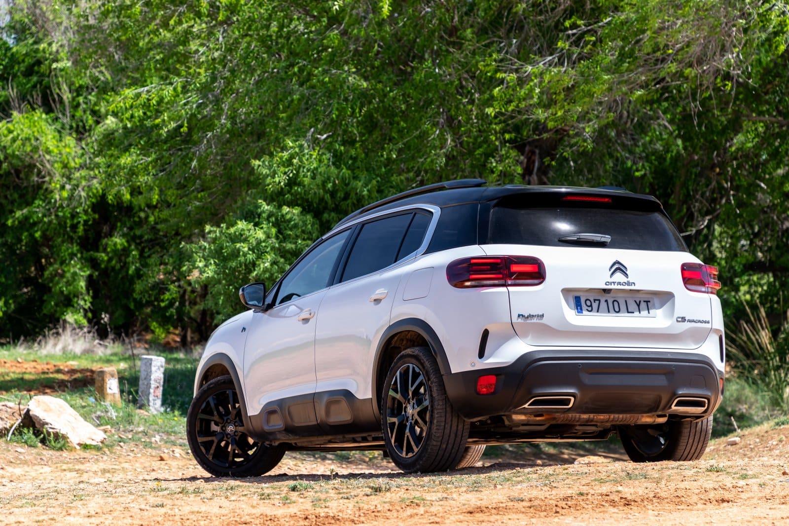 Por último y, fuera del asfalto, el C5 Aircross es capaz de hacer sus pinitos gracias a una altura libre al suelo de 204 mm y la tracción total del sistema híbrido. En todo caso, y más sin los neumáticos adecuados, hay que tener claro que se trata de un SUV. No está pensado para circular más allá de caminos sin asfaltar.