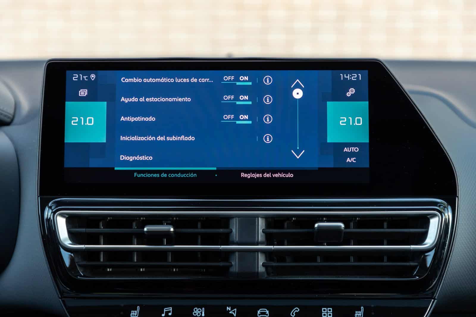 La pantalla táctil capacitativa del salpicadero es ahora de 10 pulgadas. Frente a la de modelos más nuevos como el C5 X, sigue siendo algo lenta y de gráficos mejorables. Lo mismo ocurre con la cámara de marcha atrás. Además, Apple CarPlay y Android Auto continúan necesitando cable para su conexión e integra las funciones del climatizador.