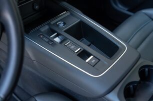 Algo más rezagados quedan el botón de arranque, el nuevo selector del cambio y los modos de conducción. Hay un segundo hueco portaobjetos. Les siguen dos posavasos con iluminación y base forrada, así como el freno de mano eléctrico. La consola culmina en un reposabrazos fijo que esconde una generosa guantera iluminada.