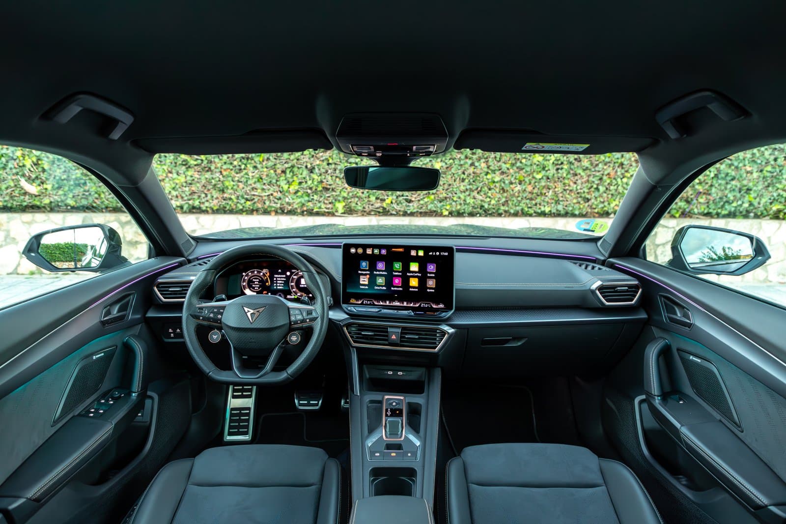 Como ya ocurría en su predecesor, nada más sentarte al volante del Formentor te darás cuenta de que es un coche hecho para disfrutar. Su baja postura de conducción, desde la que podemos ver el largo y musculoso capó, es solo un adelanto de las sensaciones que te va a transmitir, tanto a ritmo elevado como disfrutando tranquilo de una carretera de curvas.