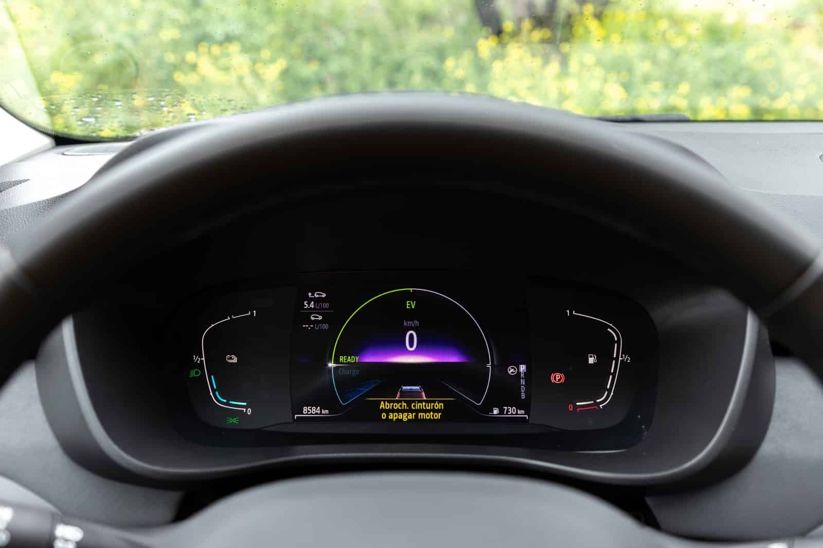 Tras él encontramos un cuadro de instrumentos digital de 7 pulgadas. Muestra la información de manera clara e intuitiva, aunque no brinda amplias posibilidades de personalización. Se complementa con una pantalla de 8 pulgadas en el salpicadero para el sistema de infoentretenimiento. Tiene seis altavoces en este acabado.