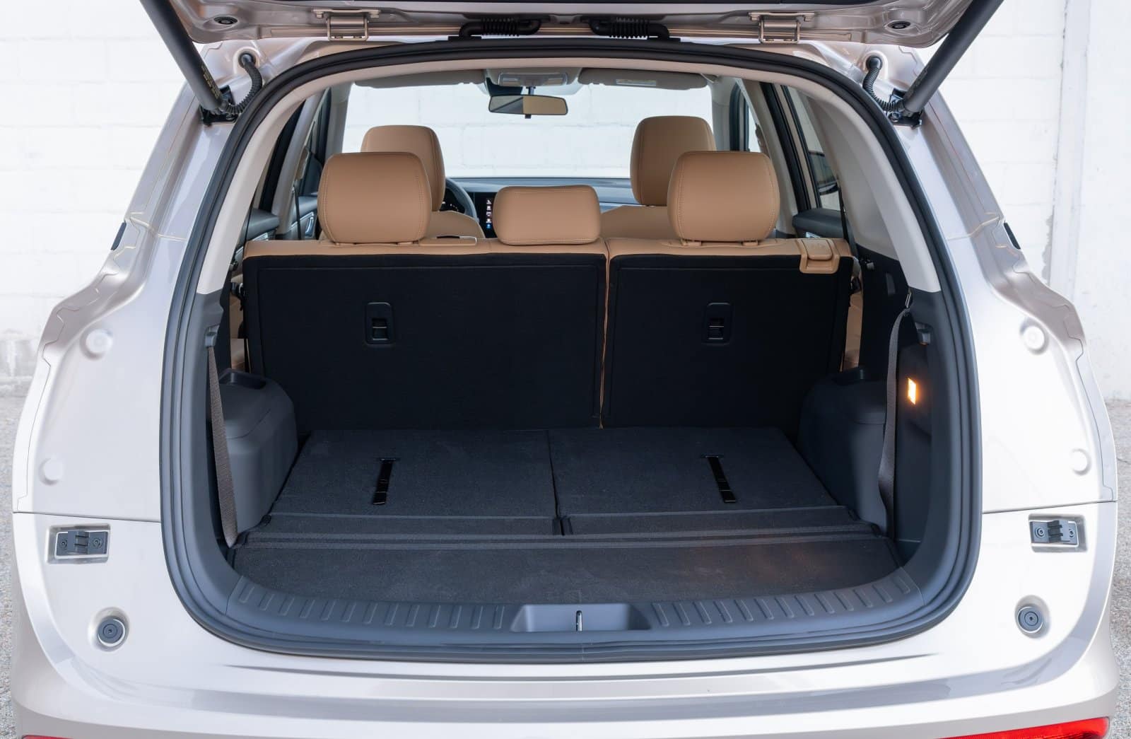 Pasando a la parte posterior, destaca la horizontalidad de las líneas. Esto queda patente, en primer lugar, en el prominente alerón del techo. Integra la tercera luz de freno y tiene aletines negros en sus extremos. La luna posterior, generosa, brinda buena visibilidad y se integra en un gran portón de apertura y cierre eléctricos.