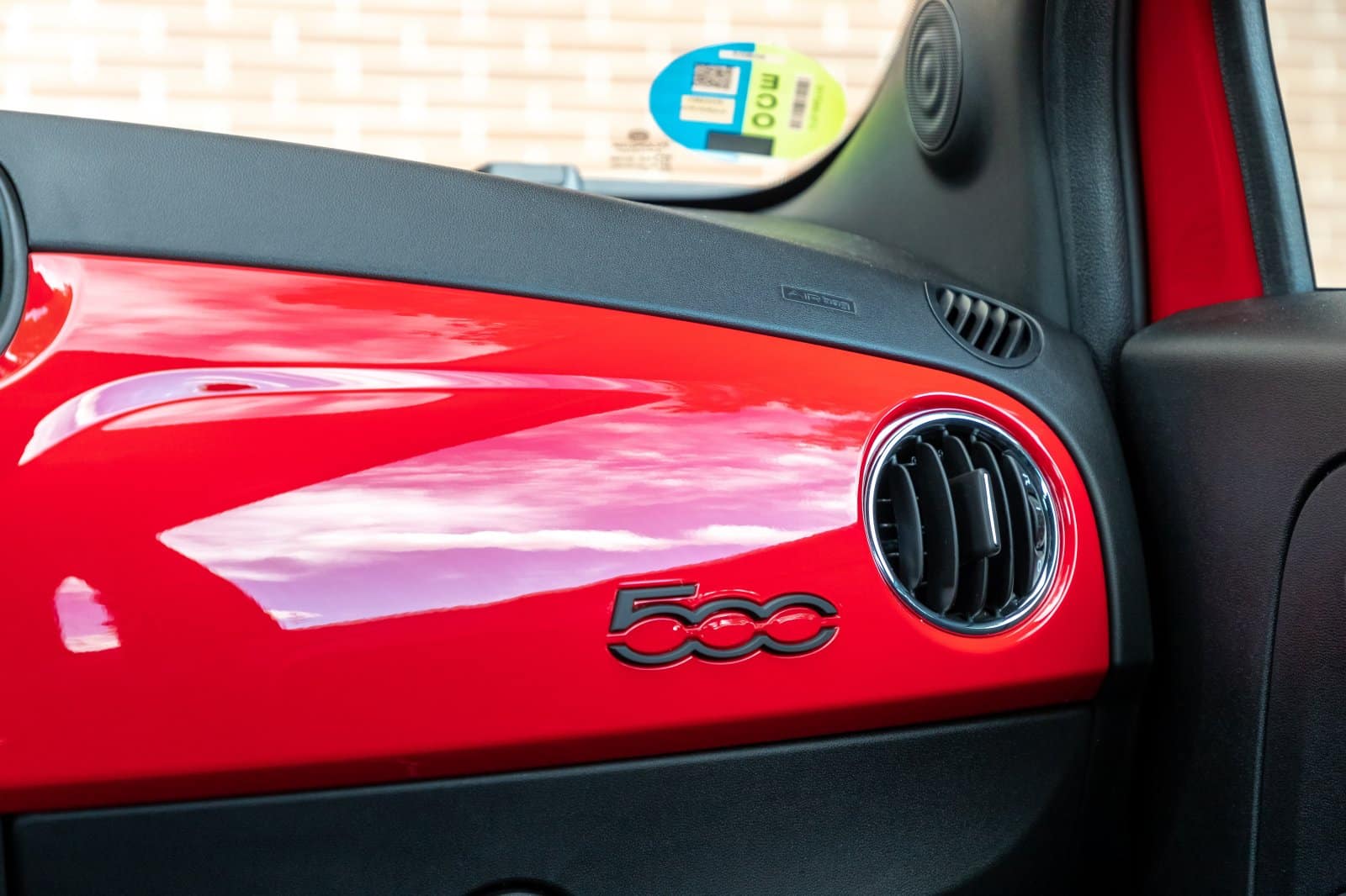 Debido a ello y a un reposapiés que queda cerca del asiento, la postura de conducción es un tanto peculiar. Vas con las rodillas flexionadas, como en una silla de oficina. A nivel calidades, el Fiat 500 es un coche sencillo, aunque atractivo visualmente. Hay elementos de valor como el pomo del cambio o la moldura en color rojo del salpicadero.